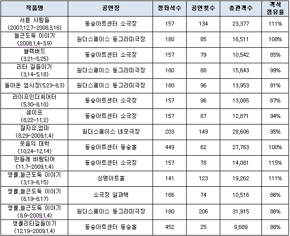 ▲ <연극열전 2> 작품별 관객현황