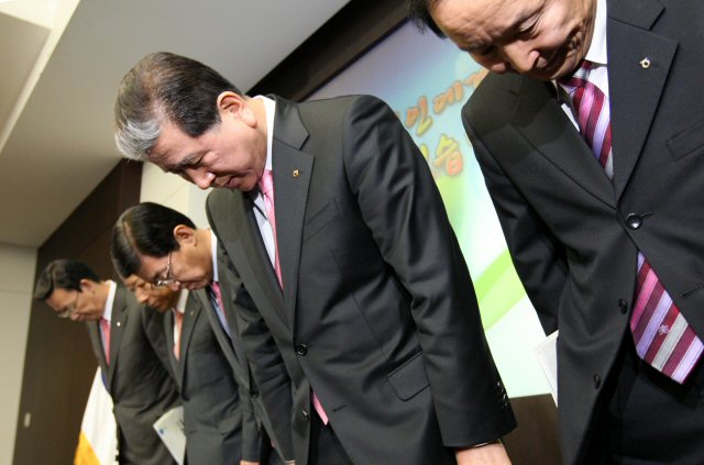 URL복사 기사공유하기 스크랩 프린트 메일보내기 글씨키우기 7일 오전 서울 농협중앙회에서 열린 농협자체개혁 방안 발표에 앞서 최원병 회장(오른쪽에서 두번째) 등 간부들이 사죄의 절을 하고 있다. (윗 사진) 기축년(己丑年) '소띠의 해'를 맞아 충남 서산 한우개량사업소에서 키운 한우(韓牛)의 아버지 '씨수소'가 "농협 앞으로 잘 좀 해 줬으면 좋겠다"는 표정을 짓고 있다.(사진=연합뉴스) 저작권자 © 소비자가 만드는 신문 무단전재 및 재배포 금지 임학근 기자 다른기사 보기 URL복사 기사공유하기 주요기사 농협금융, 2026년 리스크관리전략회의 개최 농협, 외부 전문가 참여하는 '농협개혁위원회' 공식 출범 공정위, 4대 시중은행 LTV 정보교환 담합에 과징금 2720억 원 부과 영풍 석포제련소 과징금 취소 항소심 추가 변론 22일 열려...1심은 카드뮴 불법배출 '인정' IHG, 프리미엄 브랜드 '보코 호텔' 태국 첫 선...상업·문화 거점지 '방콕 수라웡'에 개관 SK바이오사이언스, 통합 경영 체계 구축…COO 직책 신설