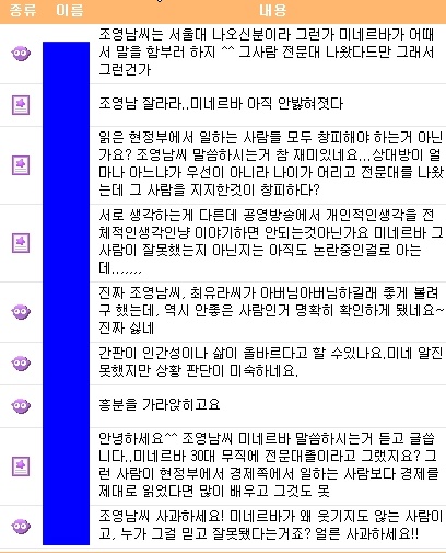 네티즌들은 "조영남씨 보고 사람들이 서울대 나와서 노래나 불러 밥묵고 사는 딴따라라고 비하한다면 기분이 좋겠나, 학력과 재산으로 사람을 평가하면 안된다, 과연 미네르바 글 한번이라도 보고 그런 소리하냐" 등 강력한 항의의 목소리를 피력하고 있다.