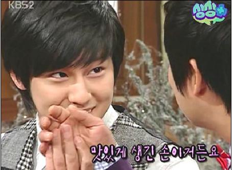이에 김범은 손을 살포시 잡은 채 "맛있게 생긴 손이거든요"라며 이수근의 손등에 키스했다.