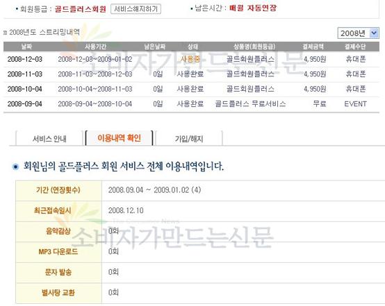 주 씨는 “단 한차례도 서비스를 이용하지 않았고 유료 회원으로 전환된다는 통지 한번 없이 몰래 돈을 인출해 갔다. 휴대폰 요금 내역서를 확인하지 않았다면 돈을 계속 빼갔을 것이다. 무료 이벤트라고 생각했던 소비자들만 피해를 당하게 된다”며 억울해했다.
