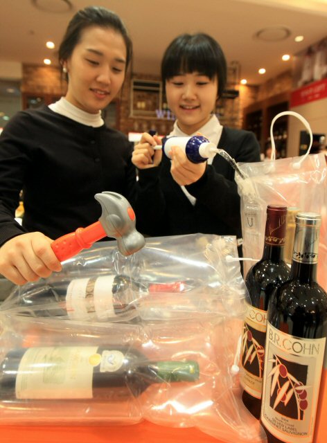URL복사 기사공유하기 스크랩 프린트 메일보내기 글씨키우기 14일 서울 중구 회현동 신세계 백화점 본점에서 여직원들이 에어백으로 포장된 와인을 모형 망치로 때리는 장면을 연출하고 있다.이 와인에어백은 일본에서 수입한 전용 포장제품으로 공기를 주입해 외부의 충격으로부터 와인을 보호할 수 있다. (사진=연합뉴스) 저작권자 © 소비자가 만드는 신문 무단전재 및 재배포 금지 김미경 기자 다른기사 보기 URL복사 기사공유하기 주요기사 한국투자증권, 5개월 만에 추가 유상증자 단행... 1조5000억 원 규모 동부건설, 창립 57주년 기념식 개최…‘강한 체질’ 경영 선언 계룡건설, 2026 중대재해 ZERO 선포식 개최 차기 기업은행장에 장민영 IBK자산운용 대표... 6번째 내부 출신 디에스엠퍼메니쉬, 한국영양학회와 MOU...영양·건강분야 산학 협력 기반 마련 김동연 지사 "코스피 5000시대, 코리아 디스카운트에서 프리미엄으로 전환"