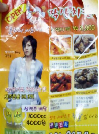 발 빠른 누리꾼들은 김현중이 홍보모델로 변신한 치킨집의 전단지를 찾아냈다.