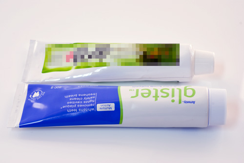 또 치약을 오래 사용하다보면 용기 안의 치약이 비는 만큼 치약이 위쪽으로 잘 밀려 올라가 주어야 하는데 기존 알루미늄 용기는 그 점이 여의치 않아 마지막엔 쓸 때마다 손으로 긁어 올려야 한다. 글리스터 치약은 다른 치약보다 묽고 점성이 부드러워 쉽게 밀려 올라가고 넓은 뚜껑을 받침삼아 거꾸로 놓으면 매번 편리하게 짜낼 수 있다.