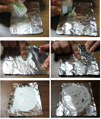 실험1) 은박지에 문질러서 색변화 관찰