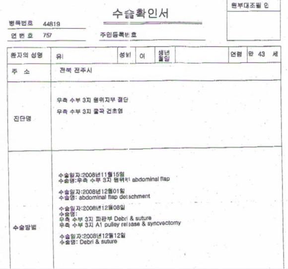 유 씨는 두 번째 방법을 선택했고, 배의 피부조직을 절개해 손가락을 덧대는 수술과 배에서 손가락을 분리하는 수술을 연달아 받았다.