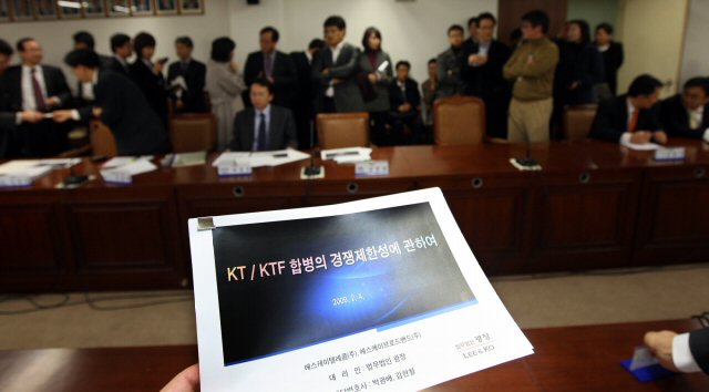 URL복사 기사공유하기 스크랩 프린트 메일보내기 글씨키우기 "KT.KTF 결합 절대 안됩니다" SK텔레콤과 LG텔레콤이 4일 오후 공정거래위원회를 나란히 방문해 KT-KTF 합병과 관련한 간담회를 가졌다. 공정위 측에서는 한철수 시장 감시 국장이 참석했다. SK텔레콤은 지난 3일 합병금지 의견서를 공정위에 제출했다.(사진=연합뉴스) 저작권자 © 소비자가 만드는 신문 무단전재 및 재배포 금지 조창용 기자 다른기사 보기 URL복사 기사공유하기 주요기사 한국투자증권, 5개월 만에 추가 유상증자 단행... 1조5000억 원 규모 동부건설, 창립 57주년 기념식 개최…‘강한 체질’ 경영 선언 계룡건설, 2026 중대재해 ZERO 선포식 개최 차기 기업은행장에 장민영 IBK자산운용 대표... 6번째 내부 출신 디에스엠퍼메니쉬, 한국영양학회와 MOU...영양·건강분야 산학 협력 기반 마련 김동연 지사 "코스피 5000시대, 코리아 디스카운트에서 프리미엄으로 전환"