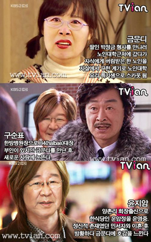 '꽃보다 할배'는 원로배우 이순재, 최불암, 신구, 박근형이 '꽃남'의 F4(이민호, 김현중, 김범, 김준 분) 역할을, 금잔디(구혜선 분)는 나문희가 맡았다.