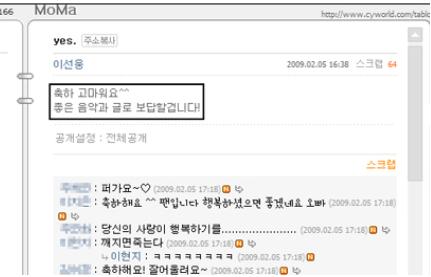 이후 강혜정의 미니홈피에도 축하글이 이어지며 두 사람의 사랑을 축복하고 있다.