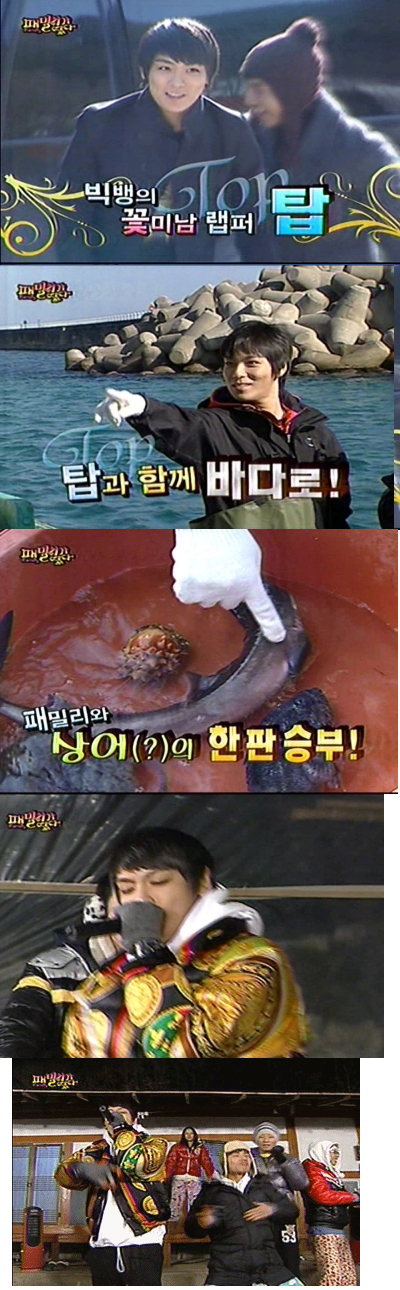 이날 '패떴'에 대성의 또다른 형인 빅뱅의 '탑TOP'이 출연하여 패밀리들(윤종신, 박예진, 김수로, 유재석, 이효리, 대성, 이천희, 김종국)과 함께 동해바다로 나섰다. 그리고 망망대해에서 낚시를 즐기던 패밀리 맴버들은 올라오는 고기마다 뿌듯함을 느끼는데 순간 상어를 잡아 올리는 상어와의 한판 승부가 펼쳐졌다.