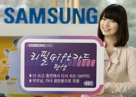 삼성 리필 Gift카드는 기존 Gift카드의 일회성의 단점을 극복한 상품으로 부모님 또는 자녀의 용돈을 정기적으로 주어야 할 경우나 가족사진 셀디 Gift카드와 같이 소장가치가 있는 Gift카드를 계속해서 사용하고자 하는 경우에 유용하다.