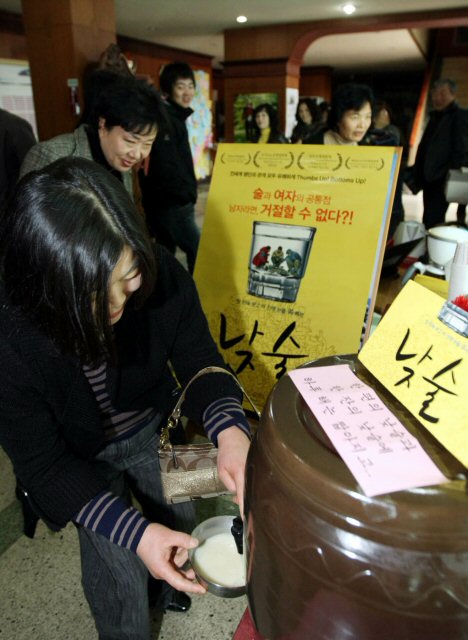 12일 광주 예술영화전용관인 광주극장에서 영화 '낮술' 개봉 기념으로 이날 하루에 한해 예매 관객들에게 막걸리와 컵라면을 제공하는 이벤트가 열리고 있다.