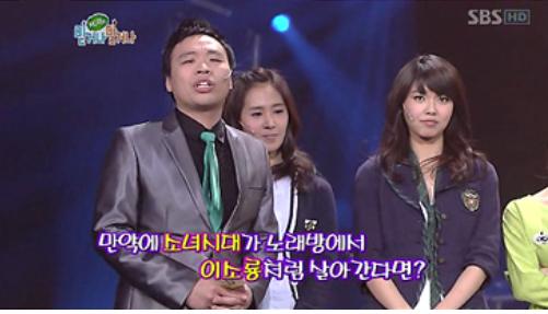 이날 소녀시대는 '소녀시대가 노래방에서 이소룡처럼 살아갔다면'이라는 가정아래 유리는 “번호 눌러러러러, 아뵤”를 말하며 이소룡을 흉내냈고 수영은 번호를 외치자 효연이 “짜릿짜릿 몸이 떨려 지지지지, 아오”라며 이소룡의 성대모사하는 등 끼를 발산했다.