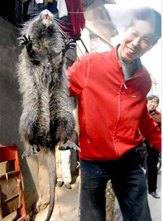 고양이 보다 큰 초대형 쥐 가 중국에서 잡혀 화제를 모으고 있다.
