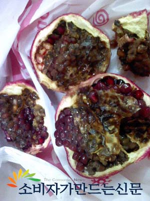 표 씨는 “일본식 된장인 ‘낫또’인 줄 알았다. 사자마자 바로 갈라 봤는데 하나도 아니고 2개가 썩어 있었다. 남은 하나도 썩어 있을 것으로 생각돼 확인하지 않았다. 이런 썩은 석류를 대형마트에서 팔아도 되는 것이냐”며 분개했다.