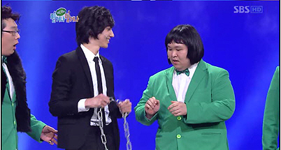 이날 방송에서 김민준은 “금잔디한테 손 안 치워?”라고 말하며 드라마에서 구준표가 잔디(구혜선)에게 선물한 목걸이를 패러디해 ‘사슬 목걸이’를 선물해 주위를 웃음바다로 만들었다.