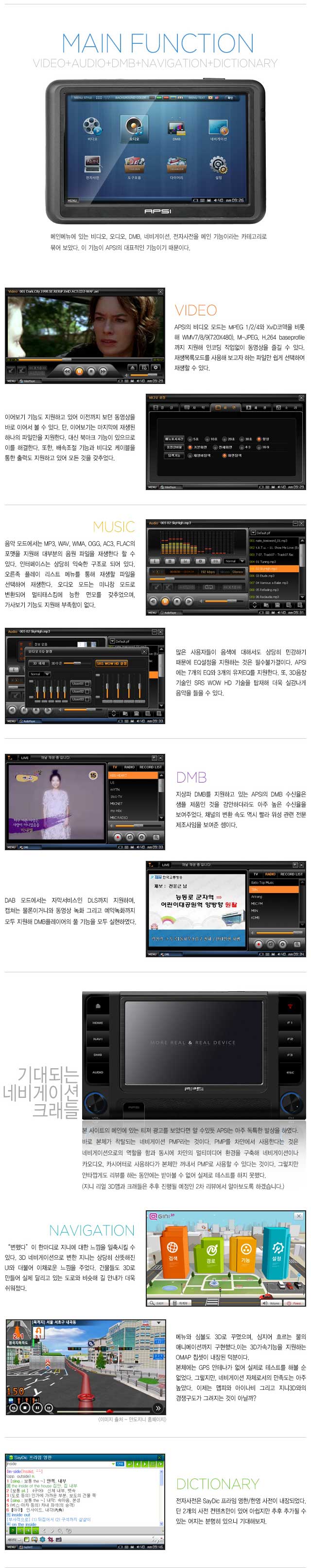 전원을 켜면 약 14초 간의 부팅시간이 흐른 뒤 메인메뉴로 진입하게 된다. APSI M-4780은 위 이미지를 보면 알 수 있듯 메뉴를