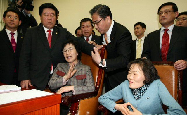 URL복사 기사공유하기 스크랩 프린트 메일보내기 글씨키우기 한나라당의 미디어 법 기습상정으로 정국이 급랭한 가운데 26일 국회 외교통상통일위원회 회의장에서 박진 외통위원장이 위원장석을 점거하고 있는 민주당 이미경 사무총장을 비롯한 민주당, 민노당 의원들에게 위원장석에서 비켜줄 것을 요구하고 있다.(사진=연합뉴스) 저작권자 © 소비자가 만드는 신문 무단전재 및 재배포 금지 조창용 기자 다른기사 보기 URL복사 기사공유하기 주요기사 삼성증권, 지난해 순이익 1조84억 원…주당 배당금 4000원 결의 [인사] 금융위원회 김동연 지사, 용인 반도체 현장 방문…"든든한 지원군이 되겠다" 에스티팜, 5600만 달러 규모 원료 공급계약 체결 KB금융, 1조 2000억 원 규모 자사주 861만 주 소각 보람의정부장례식장, 의정부성모병원과 MOU 체결...장례서비스 지원