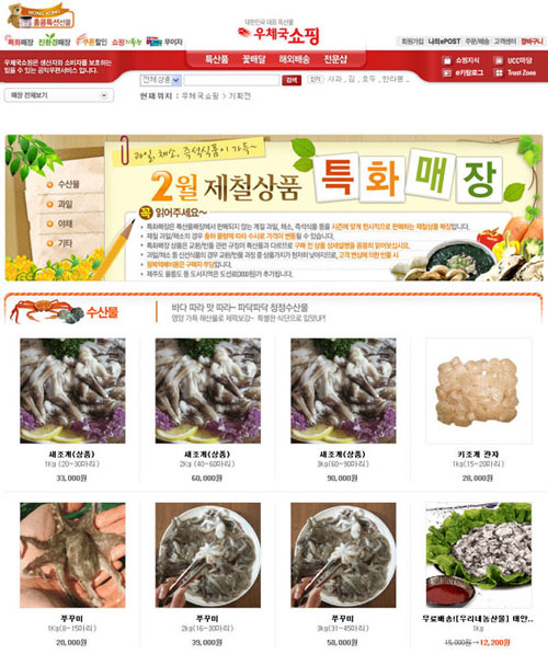 시즌에 맞춰 매달 제철상품을 판매하는 '특화매장'을 개설하고 집중적인 판촉에 나섰다. 특화매장에서는 봄철에 가장 많이 잡히고 맛있는 전복, 주꾸미, 키조개, 새조개, 대게 등 풍성한 수산물을 선보이고 있다.