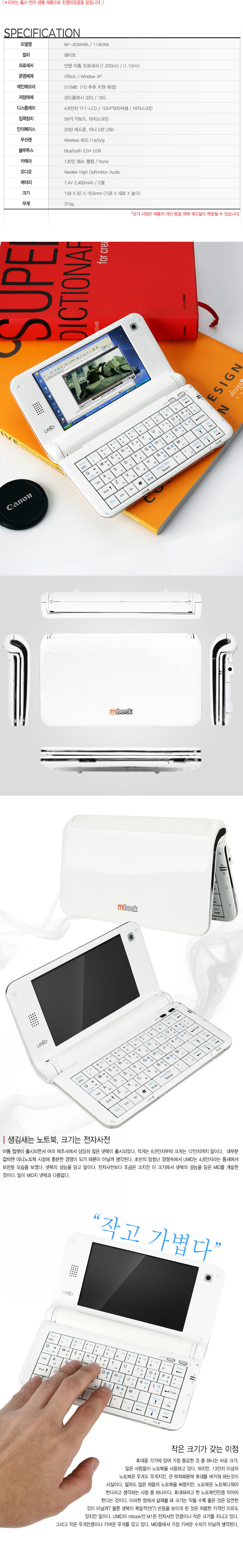 담은 초소형 MID이다. UMID에서 개발한 MID인 mbook ㅡ1-434KWA/114KWA. 이미 많은 정보가 인터넷을 통해 알아볼 수 있었듯