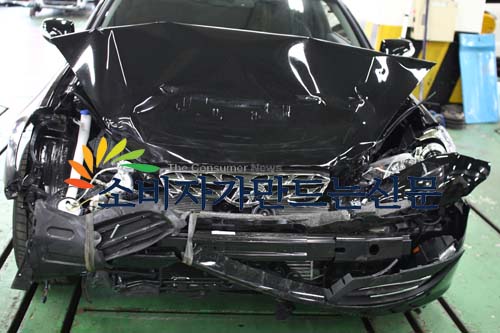 차량의 앞 본넷 부분이 모두 파손돼 차가 거의 휴지조각처럼 구겨졌는데도 불구하고 에어백이 작동하지 않아 고객의 피해는 더 클 수 밖에 없었다.