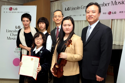 LG는 초등학교 및 중학교에 재학중인 저소득 가정의 청소년을 대상으로 공개모집을 통해 피아노, 바이올린, 비올라, 첼로 4개 부문에서 총 20명의 음악영재를 선발하고, 7일 서울시 정동 예원학교에서 'LG 링컨센터 챔버뮤직스쿨' 입학식을 가졌다.