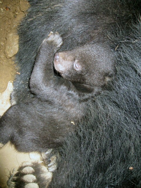 2005년 지리산에 방사한 반달가슴곰 2마리가 지난 2월 말 야생상태로 1마리씩 새끼를 출산한 사실이 확인됐다. 사진은 출산된 새끼 반달곰.