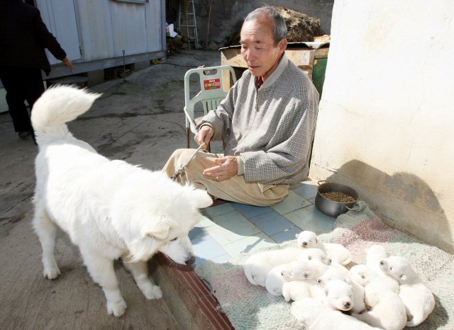 URL복사 기사공유하기 스크랩 프린트 메일보내기 글씨키우기 전남 영암군 학산면의 김성호(77)씨가 2000년 남북정상회담 당시 김정일 북한 국방위원장이 보낸 풍산개의 손녀 격인 '대산'이와 '대산'이가 지난달 22일 출산한 새끼 10마리와 함께 있다. 김대중 전 대통령은 2000년 6월 남북정상회담을 위해 평양을 방문하면서 김 위원장으로부터 풍산개 한쌍을 선물 받았다.(사진=연합뉴스) 저작권자 © 소비자가 만드는 신문 무단전재 및 재배포 금지 조창용 기자 다른기사 보기 URL복사 기사공유하기 주요기사 삼성증권, 지난해 순이익 1조84억 원…주당 배당금 4000원 결의 [인사] 금융위원회 김동연 지사, 용인 반도체 현장 방문…"든든한 지원군이 되겠다" 에스티팜, 5600만 달러 규모 원료 공급계약 체결 KB금융, 1조 2000억 원 규모 자사주 861만 주 소각 보람의정부장례식장, 의정부성모병원과 MOU 체결...장례서비스 지원