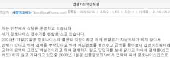 김 씨는 “당시 콜센터에서 12월과 1월 미납 요금을 기존에 결제한 카드로 처리하겠다는 연락이 와 거절했는데도 불구 결국 자기들 멋대로 결제 했다”면서 “1만원 가까운 금액을 과다 결제하고 무단으로 카드를 사용한 것도 속상한 데 본인은 연체가 되고 전혀 모르는 사람 대금을 지불했다니 어떻게 이런 일이 있을 수 있느냐”고 분통을 터뜨렸다.