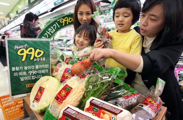 URL복사 기사공유하기 스크랩 프린트 메일보내기 글씨키우기 신세계 이마트 서울 용산역점은 11일 감자, 마늘, 상추 등 주부들이 많이 구입하는 야채 11종을 990원 균일가에 내놓아 눈길을 끌고 있다. 매장에 진열이 되자 마자 불티니게 팔리고 있다.(사진=연합뉴스) 저작권자 © 소비자가 만드는 신문 무단전재 및 재배포 금지 김미경 기자 다른기사 보기 URL복사 기사공유하기 주요기사 삼성증권, 지난해 순이익 1조84억 원…주당 배당금 4000원 결의 [인사] 금융위원회 김동연 지사, 용인 반도체 현장 방문…"든든한 지원군이 되겠다" 에스티팜, 5600만 달러 규모 원료 공급계약 체결 KB금융, 1조 2000억 원 규모 자사주 861만 주 소각 보람의정부장례식장, 의정부성모병원과 MOU 체결...장례서비스 지원