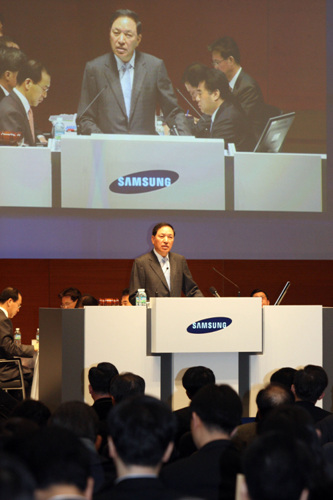 삼성전자 이윤우부회장은 "지난 한 해 글로벌 경기침체, 고유가와 환율 불안정 등 어느 때보다 어려운 경영여건에도 불구하고 연결기준으로 118조원의 매출액을 달성, 100조원대 매출을 사상 최초로 돌파하는 등 뜻 깊은 한 해였다"고 평가하면서, "올 해는 삼성전자 창립 40주년을 맞는 뜻 깊은 해로 10년전 창립 30주년 당시 한국의 외환위기를 성공적으로 극복하고 글로벌 일류기업으로 도약한 것처럼 임직원 모두가 다시 한 번 초심으로 돌아가 '초일류 기업'으로 자리 매김할 수 있도록 최선의 노력을 다하겠다"고 다짐했다.