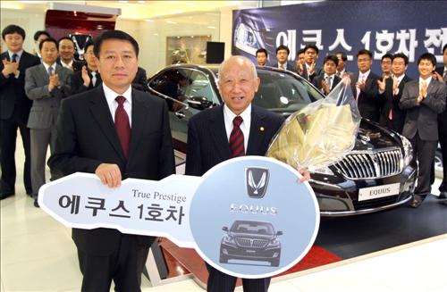 현대차는 지난 13일 서울 대치동 지점에서 신영동 국내영업본부장등 회사 관계자들과 곽수일 명예교수가 참석한 가운데 신형 에쿠스 1호차 전달식을 가졌다고 15일 밝혔다.