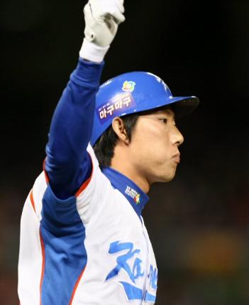 고영민이 16일 오후(한국시간) 미국 샌디에이고 펫코파크에서 열린 '2009 월드베이스볼클래식' 2라운드 한국과 멕시코의 경기에서 5회말 2사 상황에서 1점 홈런을 친 뒤 환호하고 있다.