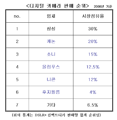일본제품들은 국내 카메라 시장에서 시장점유율이 60%를 넘어설 만큼 강세다.지난해 시장 점유율이 63.5%로 집계됐다. 하지만 한국지사들의 AS수준이 본사에 비해 턱없이 부족하다는 소비자들의 불만이 이어지고 있다.