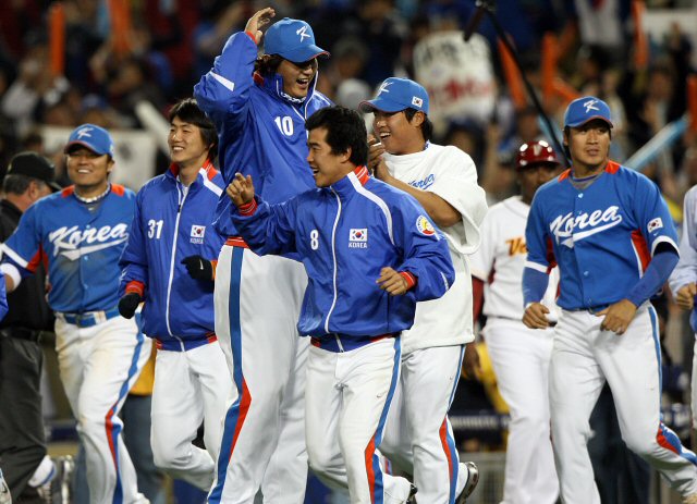 이용규, 정근우, 김현수, 이대호, 고영민 등의 한국 야구대표팀은 경기 직 후 마운드로 뛰어올라 사상 처음 결승 진출의 기쁨을 만끽 했다.