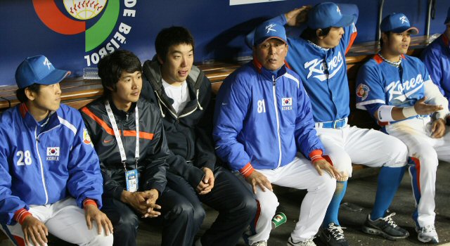 또 다른 네티즌은 "결국 이번 대회는 일=한>베네수엘라>미국>쿠바"라며 내심 일본을 치켜세우며 내일 있을 일본과 미국전에서 일본의 승리를 예상했다.(사진-연합뉴스, 승리의 주역들과)
