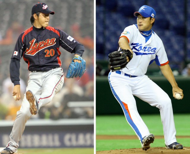 24일 미국 캘리포니아주 로스앤젤레스 다저스타디움에서 열리는 제2회 월드베이스볼클래식(WBC) 결승전에서 한국의 봉중근(오른쪽)과 일본 이와쿠마 히사시가 또 한판의 진검승부를 벌인다.