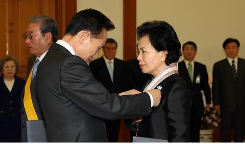 이명박 대통령은 25일 가수생활 50주년을 맞은 국민가수 이미자 씨와 사재 6천억 원을 장학사업에 쾌척한 이종환 삼영화학그룹 회장에게 각각 은관 문화훈장과 국민훈장 무궁화장을 수여했다.