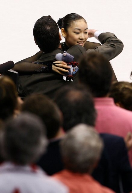 '피켜 퀸' 김연아가 28일 오전(한국시간) 미국 로스앤젤레스 스테이플센터에서 열린 2009 국제빙상경기연맹 세계피겨선수권대회 여자싱글 쇼트프로그램에서 환상의 연기를 펼친 뒤 브라이언 오서(48.캐나다) 코치가 그를 얼싸안고 감탄사만 내뱉고 있다.