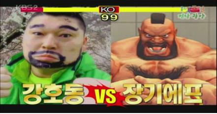 MC몽은 강호동의 얼굴을 보고 “‘스트리트 파이트’ 장기에프 캐릭터를 닮았다”고 말해 주위를 웃음바다로 만들었다.