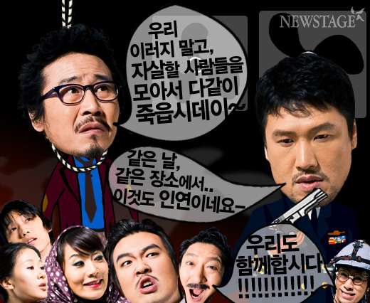 사업실패, 실직, 애정문제에 가정불화, 무감각증까지. 자살하려는 이유 한 번 다양한 사람들이 모두 모였다. 제각각 속 끓이는 사연은 다르지만 더 이상 피할 곳 없어 자살을 선택하려는 사람들의 모임이다. 자살을 하려 한다는 것 말고 또 한 가지 공통점을 찾자면 누구하나 빠질 것 없이 외로운 사람들이라는 것이다. 그렇기에 ‘황천길(?)’가는 이들의 마지막 여행은 시종일관 오히려 눈부시고 따사롭다. 뮤지컬 ‘기발한 자살여행’은 이들의 말도 안되는 여행기를 통해 서로를 토닥이는 말 한 마디가 척박한 이 사회를 살아가는데 얼마나 큰 힘이 되는지 알려주는 작품이다. 4월 19일까지 두산아트센터.