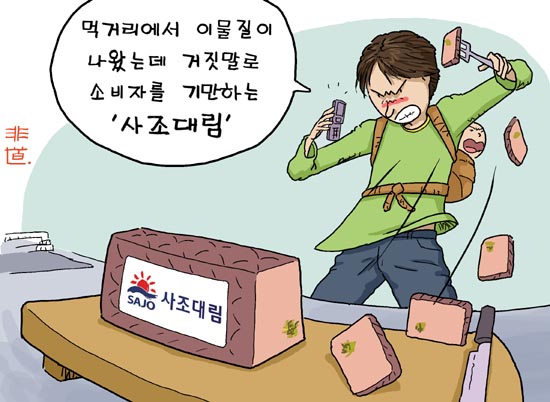 농수축산물가공업체인 사조대림의 햄에서 정체를 알 수 없는 황토색 이물질이 발견됐으나 회사측이 소비자를 거짓말로 속아 넘기려 했다는 고발이 제기됐다.