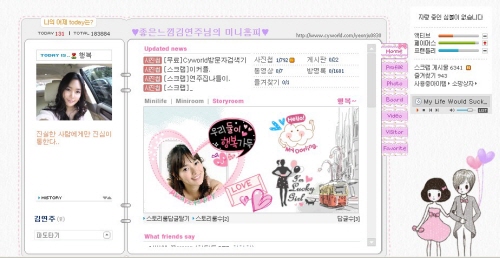 김연주의 미니홈피에는 '우리 둘이 행복가득' '헬로우 마이 달링' '행복' '아임 럭키걸'이라는 등 행복을 담은 메시지와 미니홈피 배경을 꾸며주는 스킨은 드레스를 갖춰입은 신랑 신부의 모습으로 설정 돼 있다.