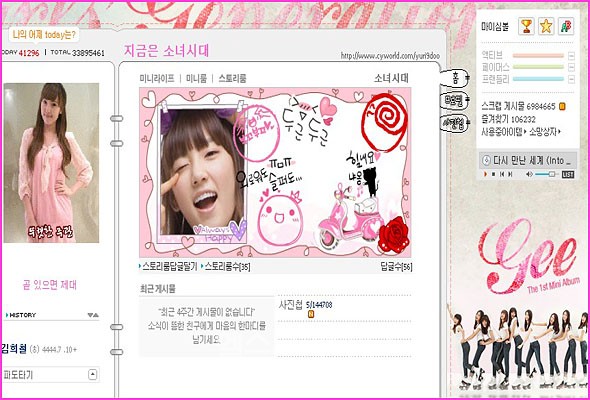 1일 오전 김희철의 미니홈피 메인사진은 물론 스킨과 배경음악을 모두 소녀시대 콘셉트로 바꿨다.