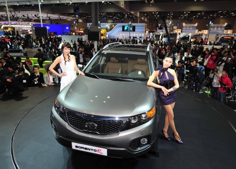 2일 오전 일산 킨텍스 전시장에서 열린 서울모터쇼 프레스데이 행사에서 준대형 스포츠유틸리티차량(SUV)인 기아자동차 쏘렌토R이 공개되고 있다.