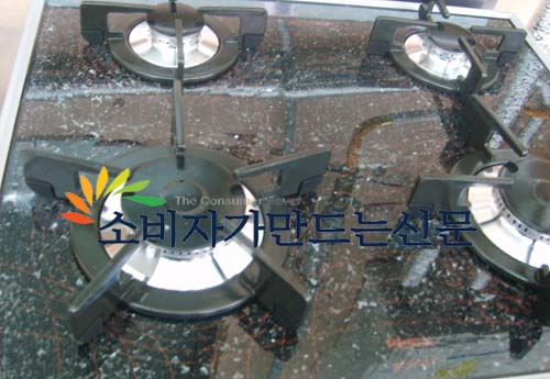 설치 후 하루 지나 물을 끓이려고 냄비를 얹고 점화를 하자 찌지직하는 소리가 들렸지만 대수롭지 않게 넘겼다. 계속되는 소음에 가스레인지를 들여다 보자 처음과 달리 상판에 흰색무늬가 보였다. 빛 반사로 인한 착시려니 했던 김 씨는 옆 조리대에 유리 파편이 튀어 있는 걸 발견하고서야 놀라 불을 껐다.