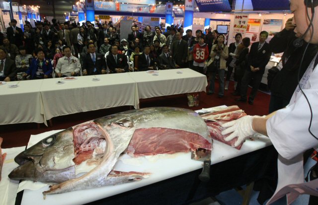 URL복사 기사공유하기 스크랩 프린트 메일보내기 글씨키우기 "가급적 품위 있게 난도질 해 주세요" 2일 오전 서울 강남구 삼성동 코엑스 인도양홀에서 열린 '2009 서울수산식품전시회'에서 참치 해체쇼가 펼쳐지고 있다.(사진=연합뉴스) 저작권자 © 소비자가 만드는 신문 무단전재 및 재배포 금지 조창용 기자 다른기사 보기 URL복사 기사공유하기 주요기사 흰색 패브릭 소파 변색됐는데...'자연스런 현상'이라며 무상AS 거부 김동연 지사 "북오산IC 진입로 3차선으로 늘려 체증 해소" 삼성증권, 지난해 순이익 1조84억 원…주당 배당금 4000원 결의 [인사] 금융위원회 김동연 지사, 용인 반도체 현장 방문…"든든한 지원군이 되겠다" 에스티팜, 5600만 달러 규모 원료 공급계약 체결