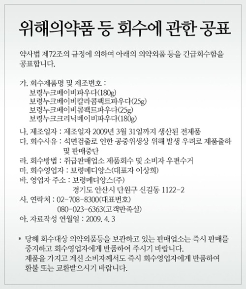 [소비자가 만드는 신문 = 유성용 기자] 석면 베이비파우더 파문의 중심에 있는 보령메디앙스가 졸속 사후관리로 또 한번 소비자들의 도마에 올랐다.