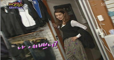 그녀는 이날 방송에서 화려한 문양의 몸빼를 고르더니 이천희와 김종국에게도 몸빼를 입어보라고 권했다.