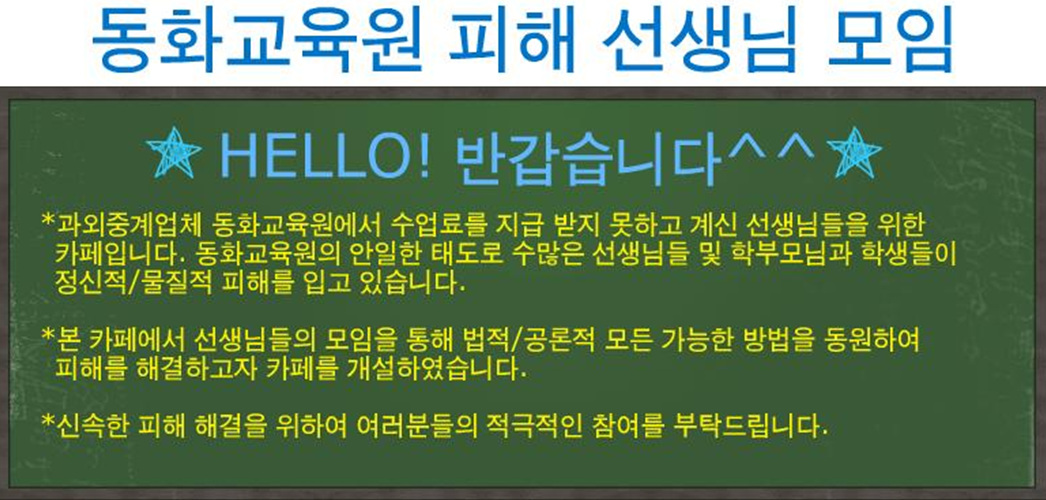이들은 현재 '동화교육원 피해 선생님 모임(http://cafe.naver.com/dongwhateachers/99)'이란 카페를 개설하고 피해자들을 결집하는 한편 다각적인 대책을 마련하고 있다.